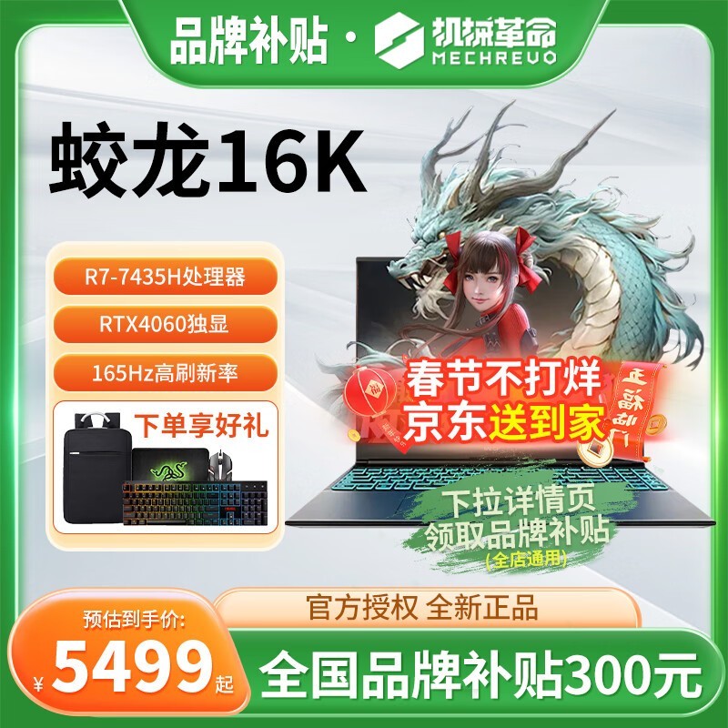 机械革命蛟龙16K游戏本爆降300元,到手仅5699元