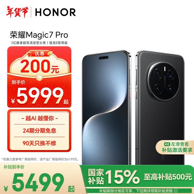 荣耀Magic7 Pro手机优惠来袭,国家补贴15%实付金额更实惠