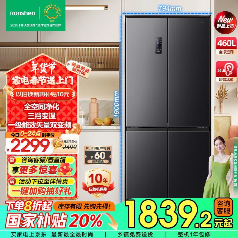 容声离子净味冰箱1703元到手