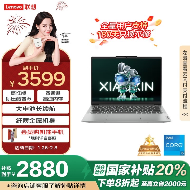 联想小新14笔记本电脑限时优惠2856元
