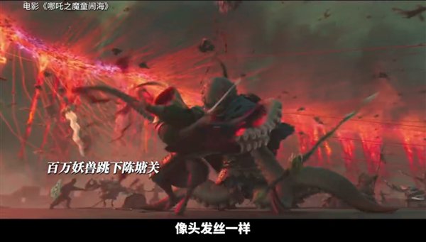 “没有任何一个片子有这样(锁链)的一个展示”“像头发丝一样”“乱中有序”,制作团队表示,这些锁链原本是一条条曲线,要一个个替换成锁链,而且每一只妖兽锁链形态都不一样,总共有百万条。