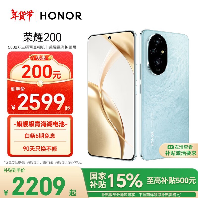 荣耀HONOR 200 5G手机价格直降!原价2799元,活动价仅需2181元