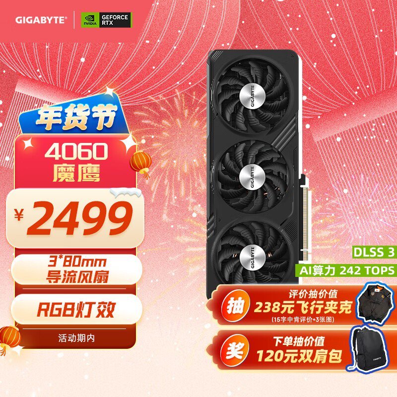 技嘉RTX 4060 GAMING OC 8G显卡特价优惠抢购价2366元