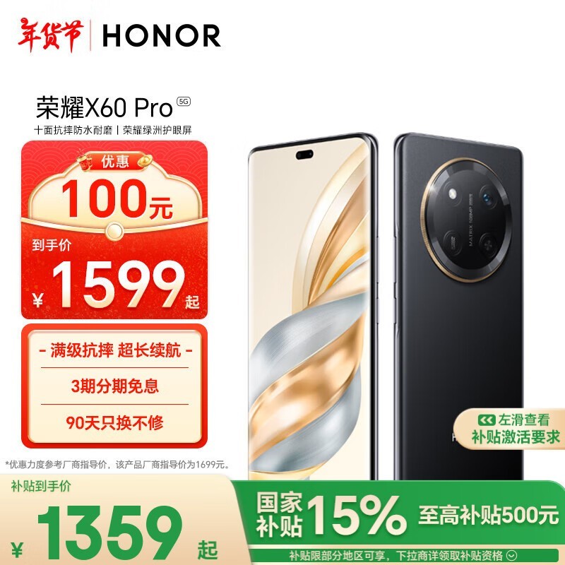 荣耀X60 Pro手机1342元到手!首发旗舰芯片性价比超高