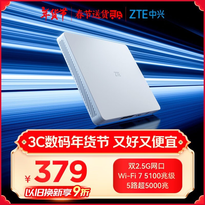 中兴BE5100Pro+晴天版千兆路由器 327元入手超值