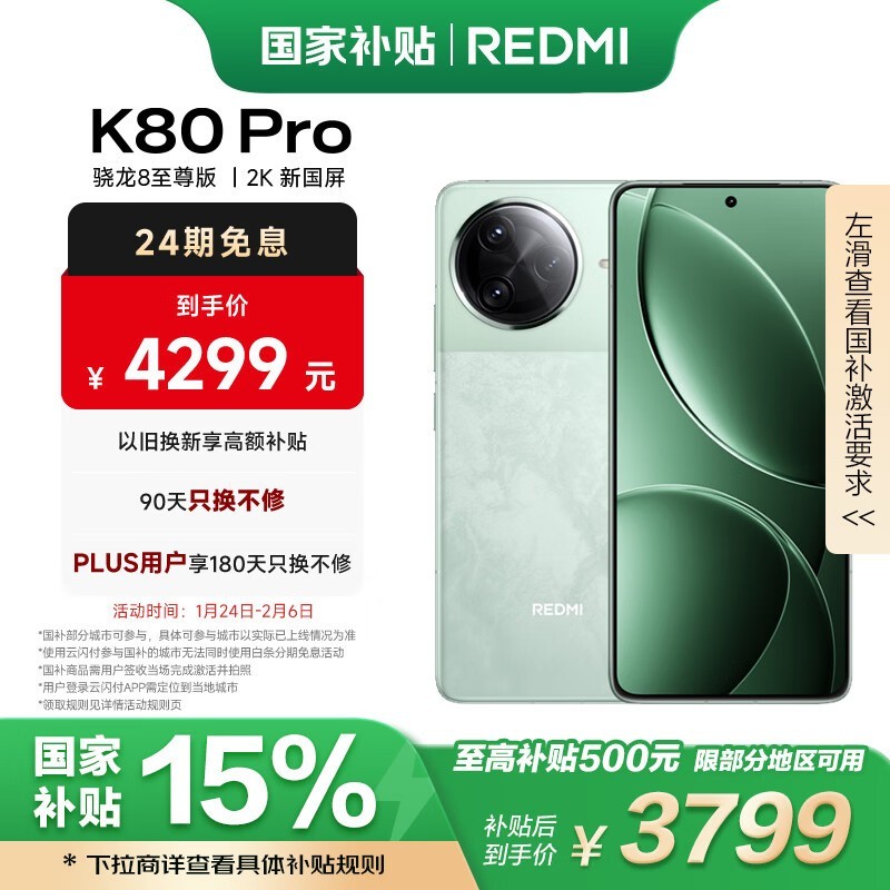 红米K80 Pro手机跌至3779元 还免费送12GB运存