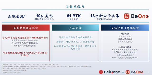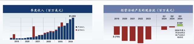 但现如今,百济神州烧钱的日子终于到头了。2024Q3,百济神州达成单季度10亿美元营收,而且可以说全是自身产品带来的收入,并非对外授权,连续两个季度实现Non-GAAP(非美国通用会计准则)经营利润盈利,并于2024Q3实现季度经营性现金流转正,根据公司的初步评估,2025年将实现全年经营利润为正。
