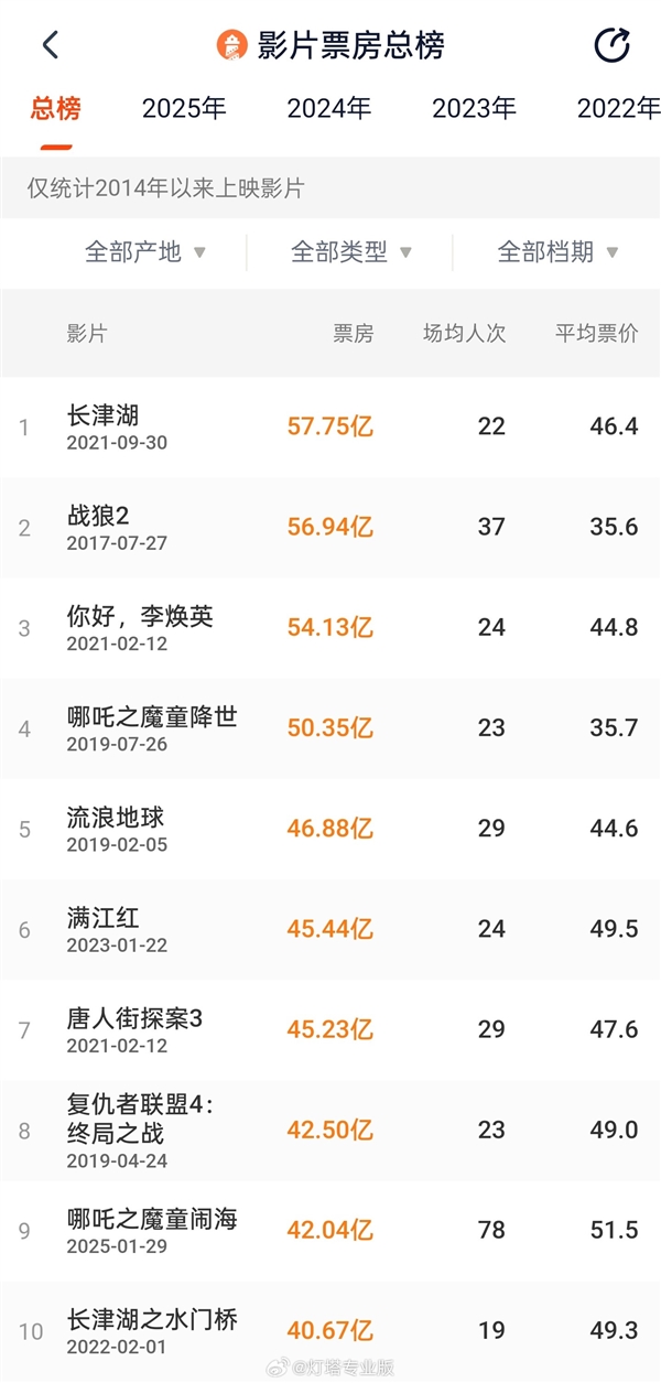 快科技2月4日消息,这个春季档,电影《哪吒之魔童闹海》简直杀疯了,当前累计票房超42亿高居首位,超过了《流浪地球2》、《长津湖之水门桥》,进入中国影史票房榜前九名。