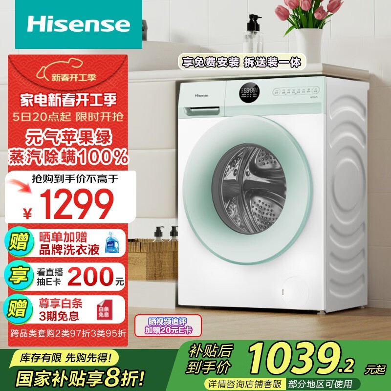 海信超薄大容量滚筒洗衣机:10公斤智控高效洗衣机,空间大师,仅1299元起