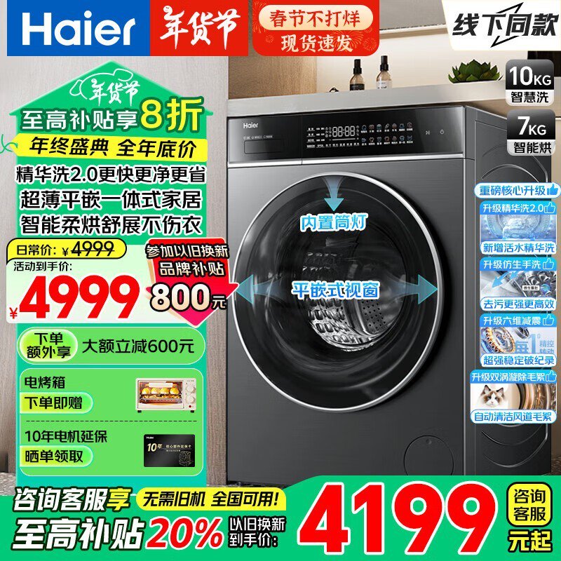 海尔超薄智能直驱精华洗洗衣机:大容量、除菌便捷,都市家庭的理想洗衣神器