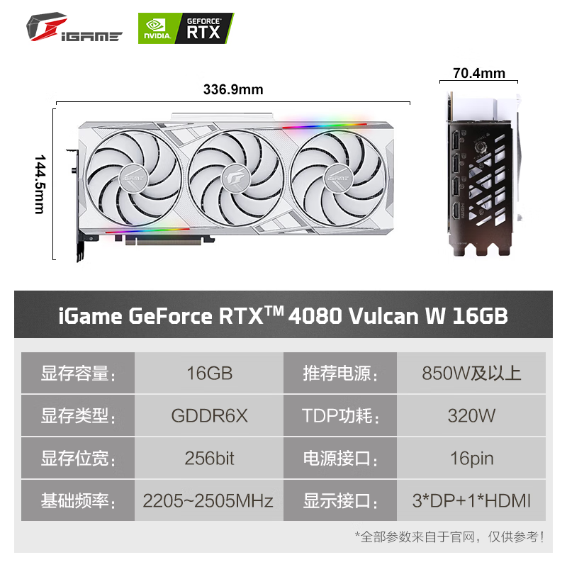 七彩虹RTX 4080 Vulcan W OC游戏显卡仅售9899元