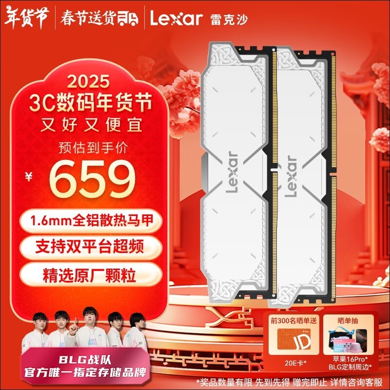 雷克沙 DDR5 6000 32GB 内存条促销价649元