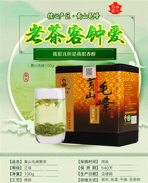 中华老字号谢裕大官方旗舰,谢裕大黄山毛峰100g官方日常售价29.9元买,可领 20元冲量券,实付9.9元包邮。