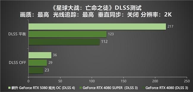从测试结果来看,耕升 GeForce RTX 5080 炫光 OC对比GeForce RTX 4080 SUPER与GeForce RTX 4080这两款显卡,有着更高的性能提升。耕升 GeForce RTX 5080 炫光 OC在启用NVIDIA DLSS 4技术后,即使在更高分辨率和更高图形负载的场景下,也能够为玩家带来更高的帧数表现。总的来说,耕升 GeForce RTX 5080 炫光 OC对于追求极致性能和体验的游戏玩家和创作者,无疑是当前最值得入手的选择。这展示了耕升 GeForce RTX 5080 炫光 OC在技术上具有明显的领先优势,也意味了耕升在显卡领域的进一步突破!