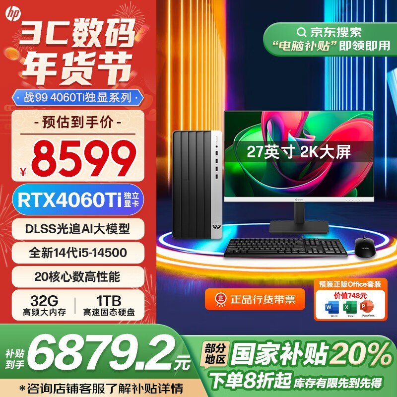 惠普 战99 游戏电脑国家补贴后仅售6879元!