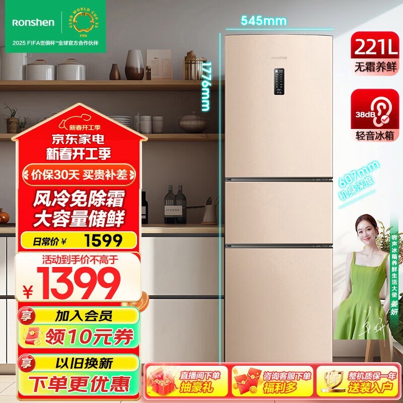容声 BCD-221WD16NY 3门冰箱 家庭用 无霜 节能 容量大
