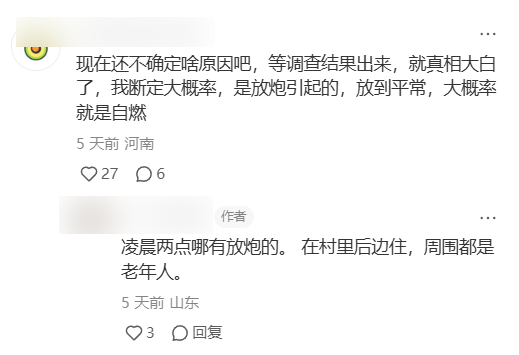 对于车辆的起火原因,有网友表示可能是过年期间,夜里有人放鞭炮引燃的。