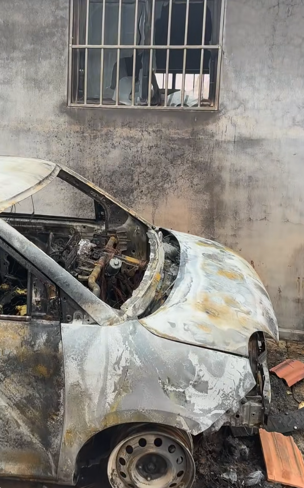 车主公布的视频显示,车辆已被烧成空壳,整车面临报废。