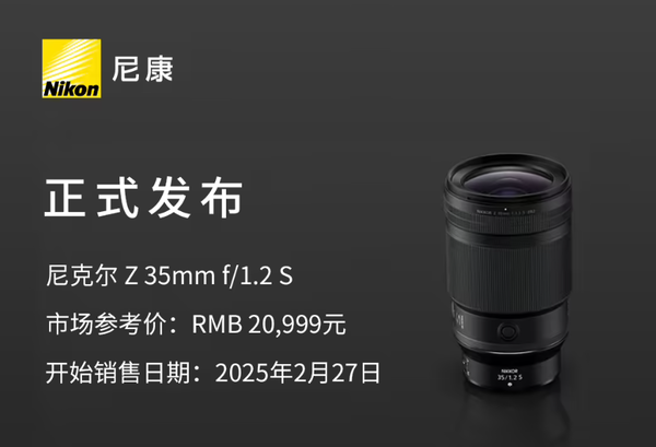 值得一提的是,2月5日,尼康还发布了Nikkor Z 35mm f/1.2 S镜头和轻便型数码相机 COOLPIX P1100,中国市场售价分别为20999元和7480元,开售时间均为2025年2月27日。
