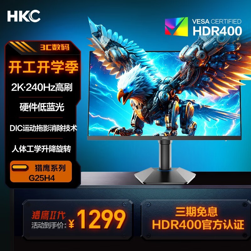 HKC 猎鹰二代 G25H4显示器1104.15入手,性能价格比超高!