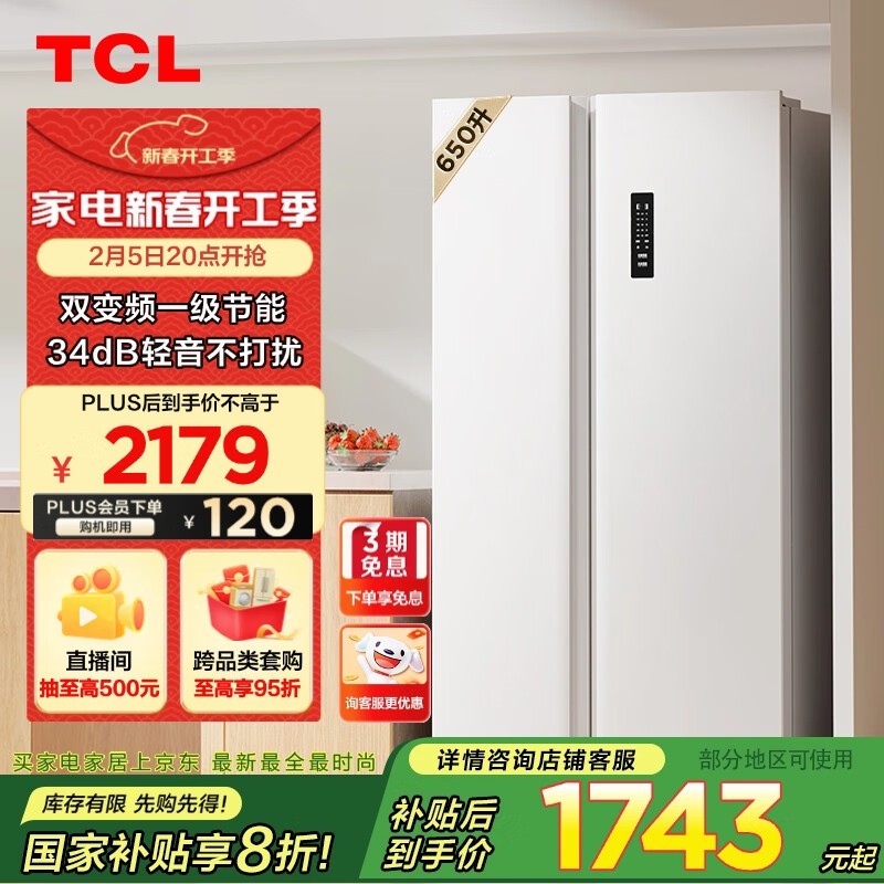 TCL T5系列风冷无霜冰箱仅1695元 采用一体双变频技术节能环保