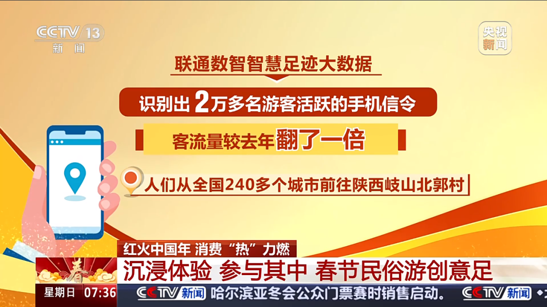 这个春节假期,不少地区都在忙着打造消费新场景,解锁消费新玩法,多元场景加速向“新”,带给消费市场浓浓暖意。假期期间,中央电视台多次引用联通数智智慧足迹提供的数据,解锁春节消费新“潮”向。