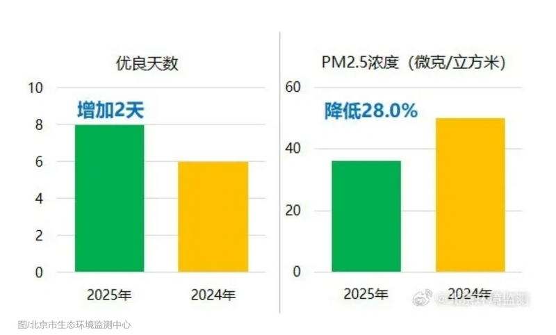 得益于全市上下群策群力,北京清新过年取得了良好的环境效果。今年除夕至正月初七8天春节假期期间,北京空气质量全部优良,其中一级优4天,二级良4天,优良天数较去年增加2天。PM2.5平均浓度为36微克/立方米,比去年同期改善28.0%。
