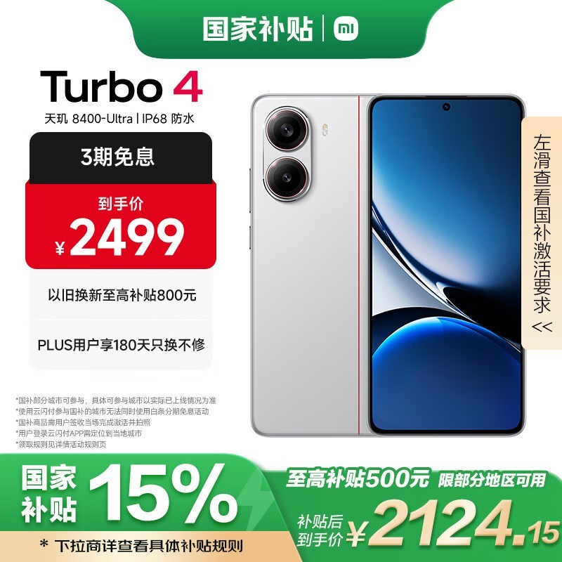 红米 Turbo 4 5G手机优惠2107元 还有国补15%和神券可以领