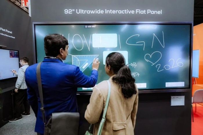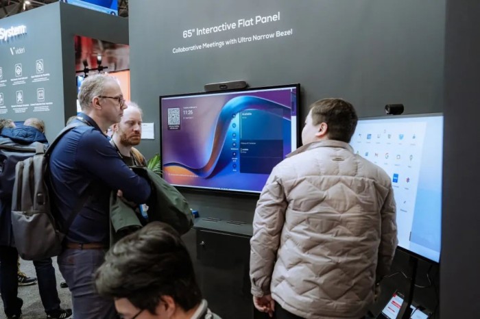 此外,现场还展出了多个创新的IFPD产品,包括92吋超宽屏,多功能可旋转会议屏,以及深度集成音视频软硬件的超薄会议一体机,充分满足高清视频会议、书写、投屏、办公应用等需求。