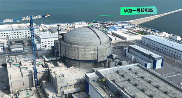 这是我国研发设计的具有完全自主知识产权的第三代核电技术的华龙一号核电站。