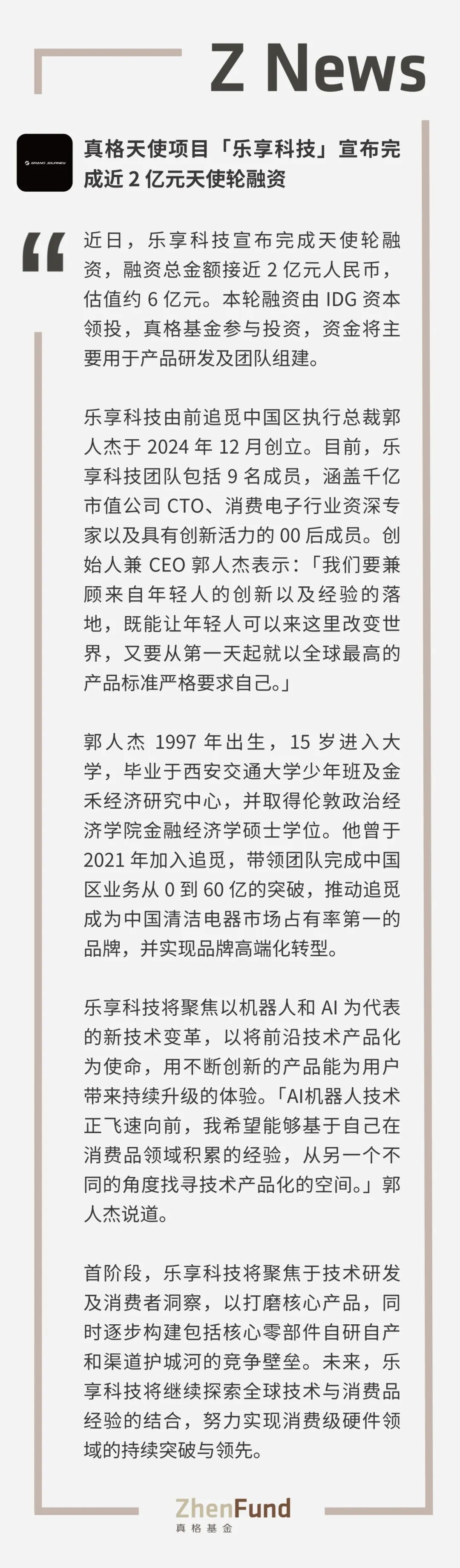 真格天使项目「乐享科技」宣布完成近 2 亿元天使轮融资|Z News