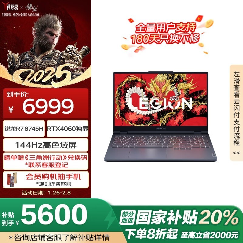 联想拯救者R7000游戏本直降1/4!5563元入手超值价
