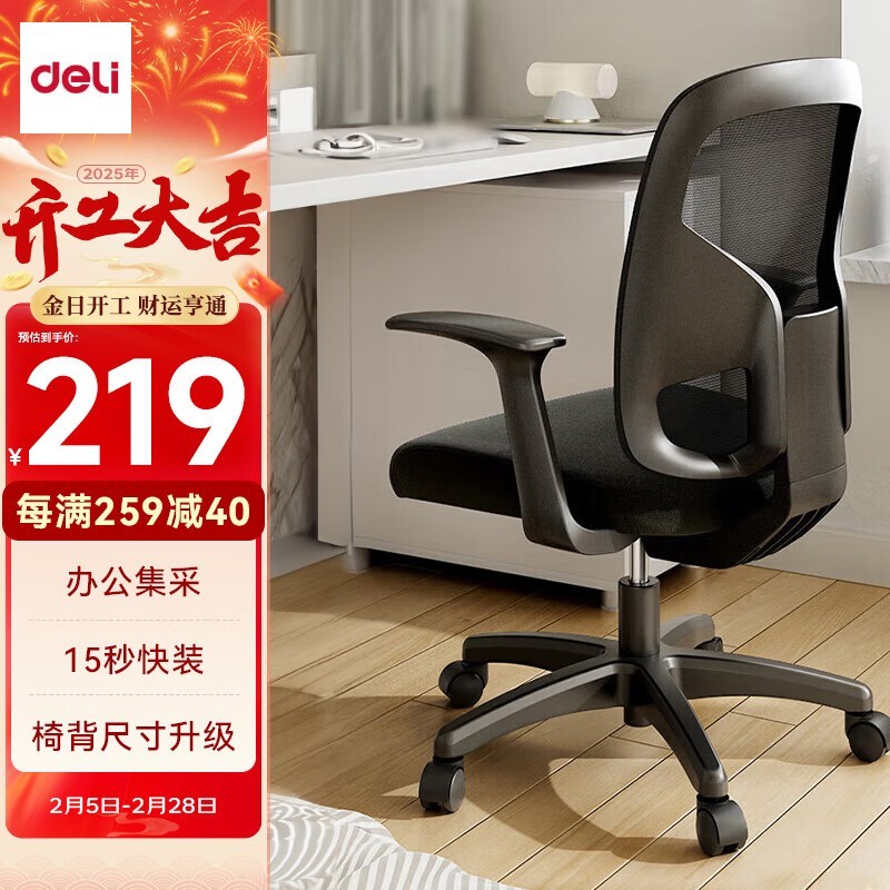 得力工具人体工学靠背办公椅电脑椅到手价216元