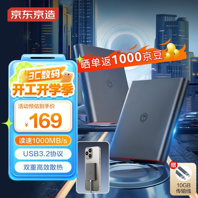 京东京造LQ1000 PSSD移动磁吸固态硬盘仅售158元
