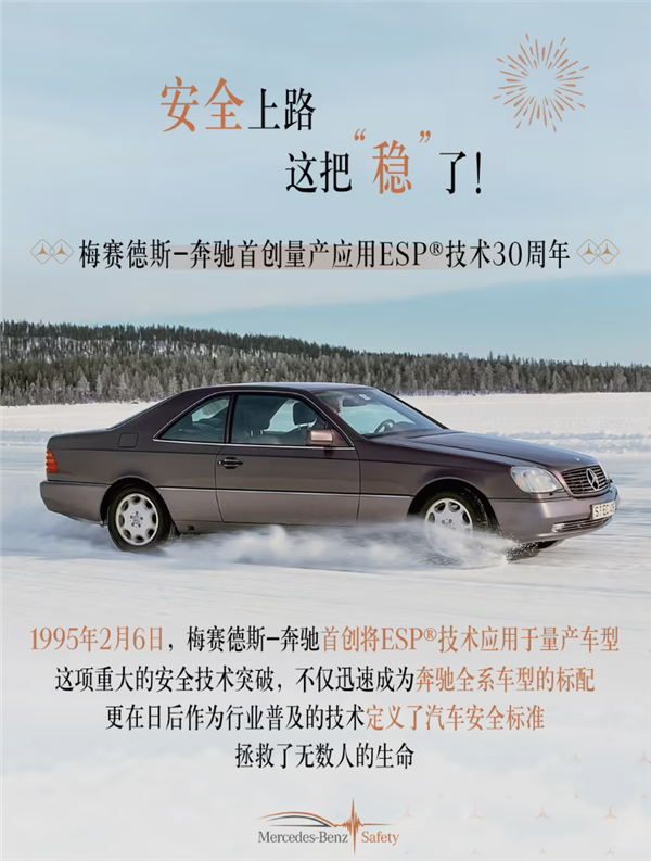 快科技2月6日消息,梅赛德斯-奔驰今日发文纪念ESP(电控车辆稳定行驶系统)全球首次亮相30周年。