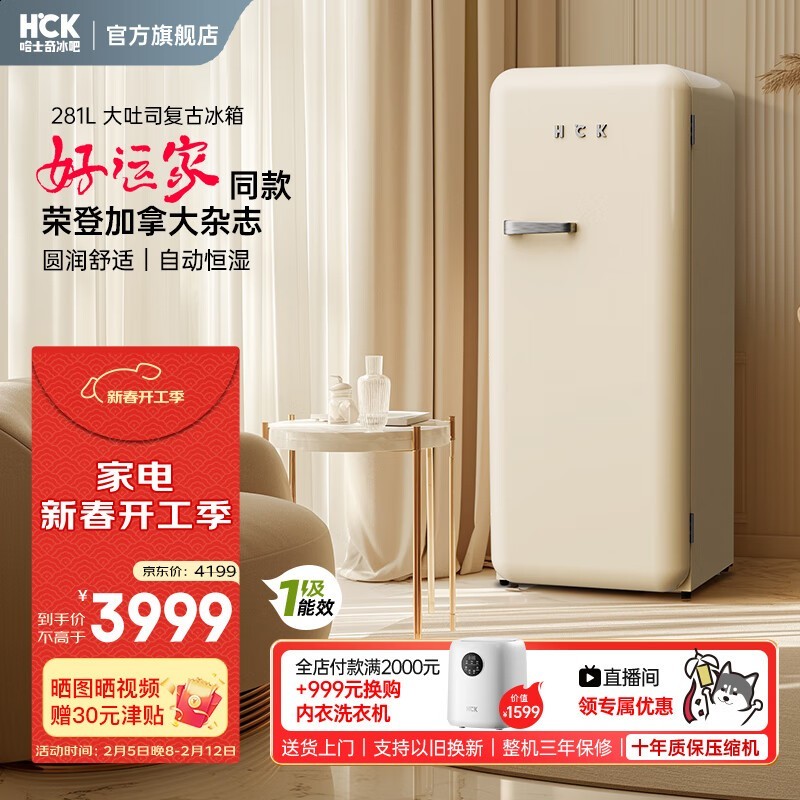 限时抢购!哈士奇HCK复古冰箱仅售3899元