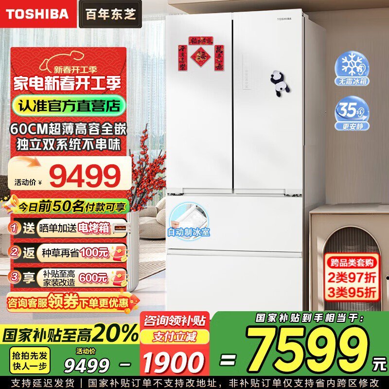双循环保鲜技术+雾化保鲜技术 东芝白珍珠548冰箱6586元入手
