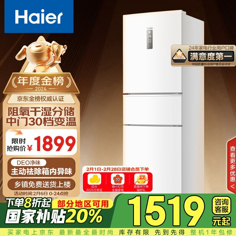 海尔电冰箱限时特惠!原价1899元,到手价1465元