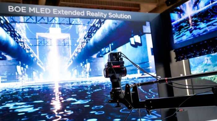 随着XR技术的蓬勃发展,京东方MLED业务推出虚拟拍摄解决方案,实现平面与曲面自由切换,并提供0到±5°定制化弧面设计,以满足不同拍摄场景需求。该解决方案支持7680Hz超高刷新率,亮度高达1800nit,色域覆盖DCI-P3 97%,能够精准还原真实光影效果,16bit灰阶精准还原影视级色彩,赋能影视制作、数字展厅等场景。为影视拍摄、演播厅、电竞赛事等提供高质量沉浸式视觉体验。