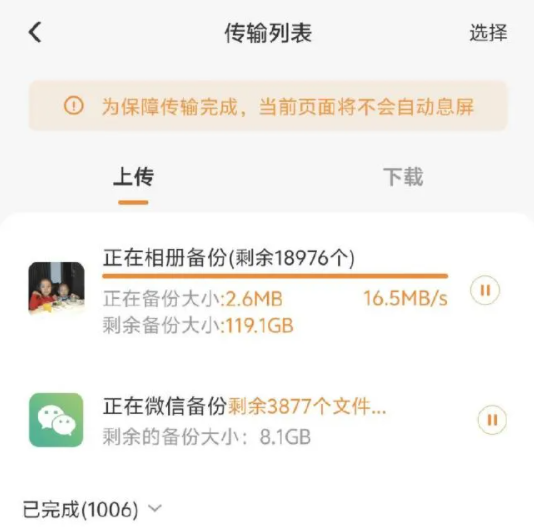 微信和照片是手机存储空间占用大户,通过备份到云盘,可以放心清理手机内存空间,节约下来继续拍摄,而且不限速,将来下载查看非常快。