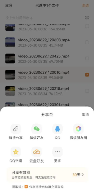 上传到云盘里的文件可以很方便地一键分享给他人,尤其一些大的视频文件,大家收到后可以不限速地下载,这一点的体验是非常好的。