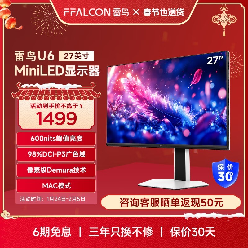 FFALCON雷鸟显示器旗舰店全新MiniLED显示器1429元