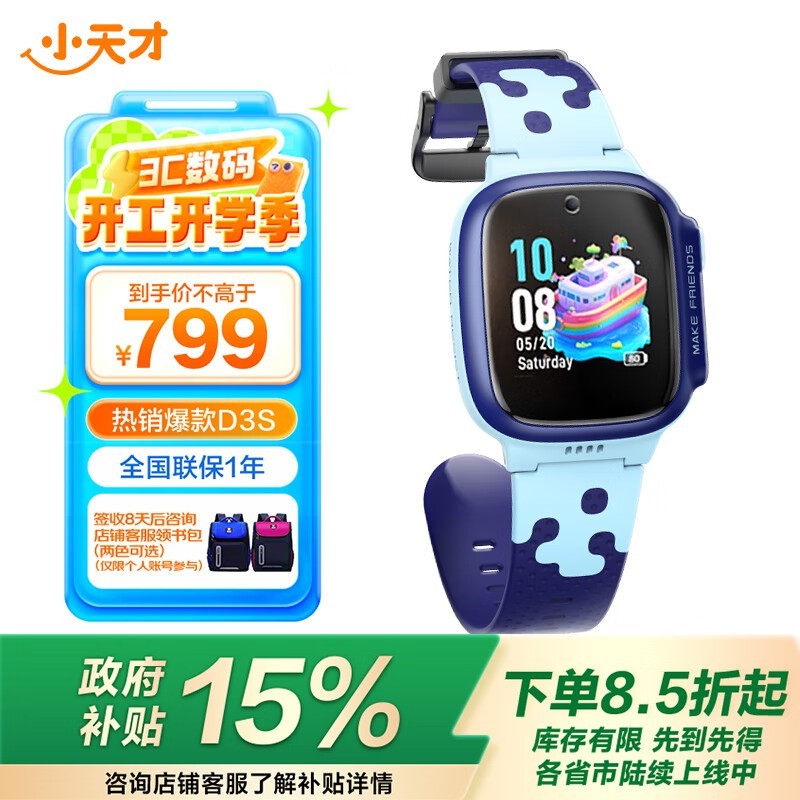视频通话+防水+GPS定位 小天才儿童电话手表D3S限时优惠675元