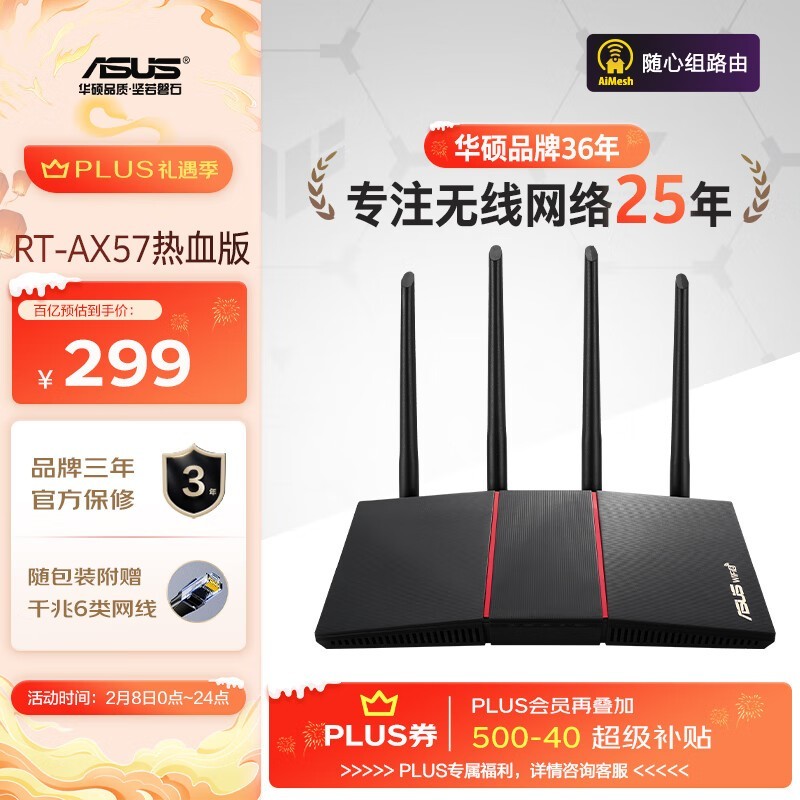 华硕双频千兆路由器仅274元!买就送优惠券!
