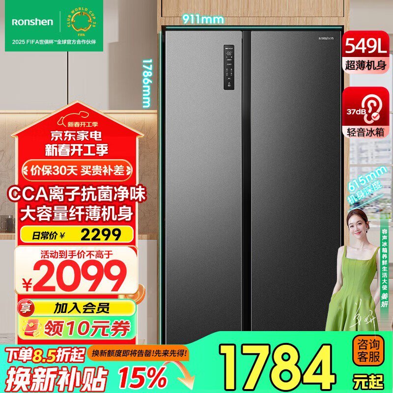 容声549升双开门电冰箱,到手价1464元