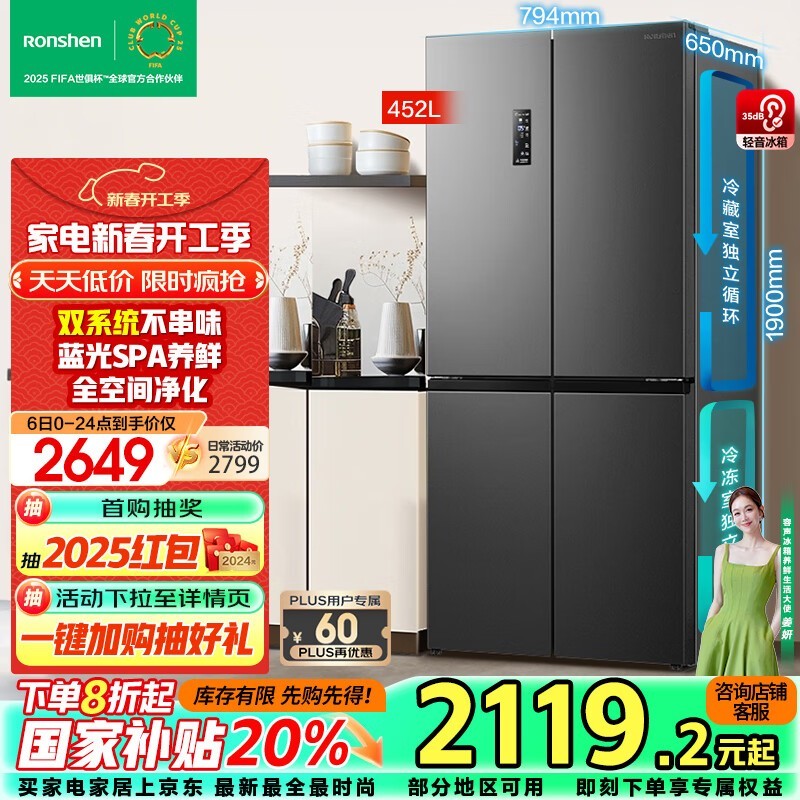 容声离子净味冰箱2000出头 抢购价2046元!