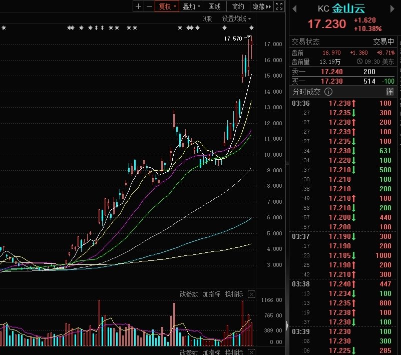 晚上看了下外盘,到目前看,美股表现不佳,但英伟达继续雄起,中概股依然强势,金山云再次大涨10%(截至写文章之时),金山云这几天时间已经反倍了,这个票3个月时间已经反了6倍了,确实牛13,最近这些日子的反倍对应的纯粹是DEEPSEEK行情,大家好自为之吧,别浪费行情。小米的AI眼镜也要出来了,雷总今年赢麻了。欢迎大家来我的直播间交流。