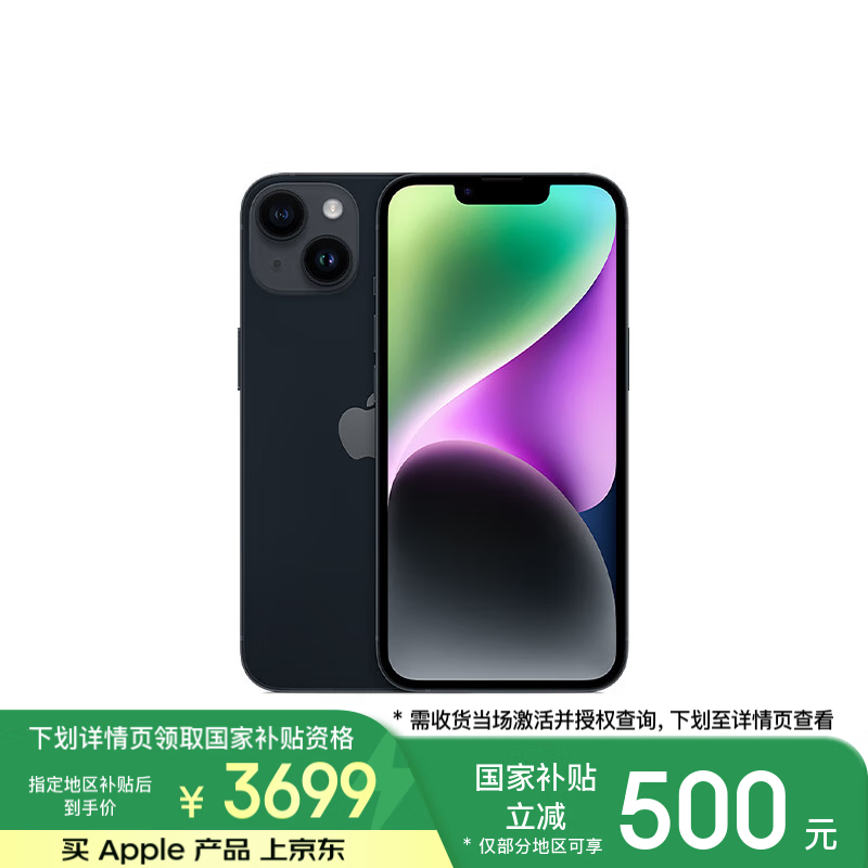 iPhone 14系列 A2884 5G手机 128GB 午夜色 秒杀价3678元