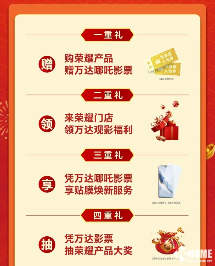 购机优惠享不停,门店福利赢到爽!即日起前往荣耀门店参与活动,有机会赢得限量哪吒周边,更有电影新角色专属周边等你解锁,快来把心仪已久的“哪吒”与荣耀新机一起抱回家。同时,荣耀携手万达电影,为喜欢“哪吒”的消费者带来四重观影福利,囊括购荣耀产品赠万达哪吒影票、来荣耀门店领万达观影福利、凭万达哪吒影票享贴膜焕新服务,以及凭万达影票抽荣耀产品大奖。解锁更多互动惊喜,尽在荣耀门店。