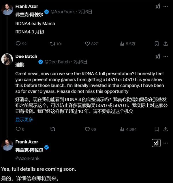 不过AMD游戏解决方案和游戏营销首席架构师Frank Azor日前在回复网友时表示,完整的信息将很快公布,这也印证了AMD在2月底举办RX 9070系列发布会的消息。